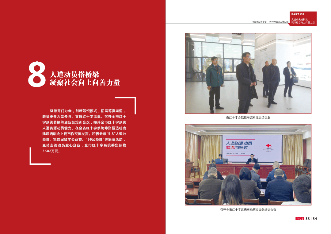 坚持开门办会,创新筹资模式,拓展筹资渠道,动员更多力量参与、支持红十字事业。召开全市红十字系统募捐筹资业务培训会议,提升全市红十字系统人道资源动员能力。在全省红十字系统筹资暨透明度建设培训会上我市作交流发言。积极参与“5.8”人道公益日、第四届数字公益节、“99公益日”等筹资活动,主动走访动员爱心企业,全市红十字系统筹集款物3502万元。