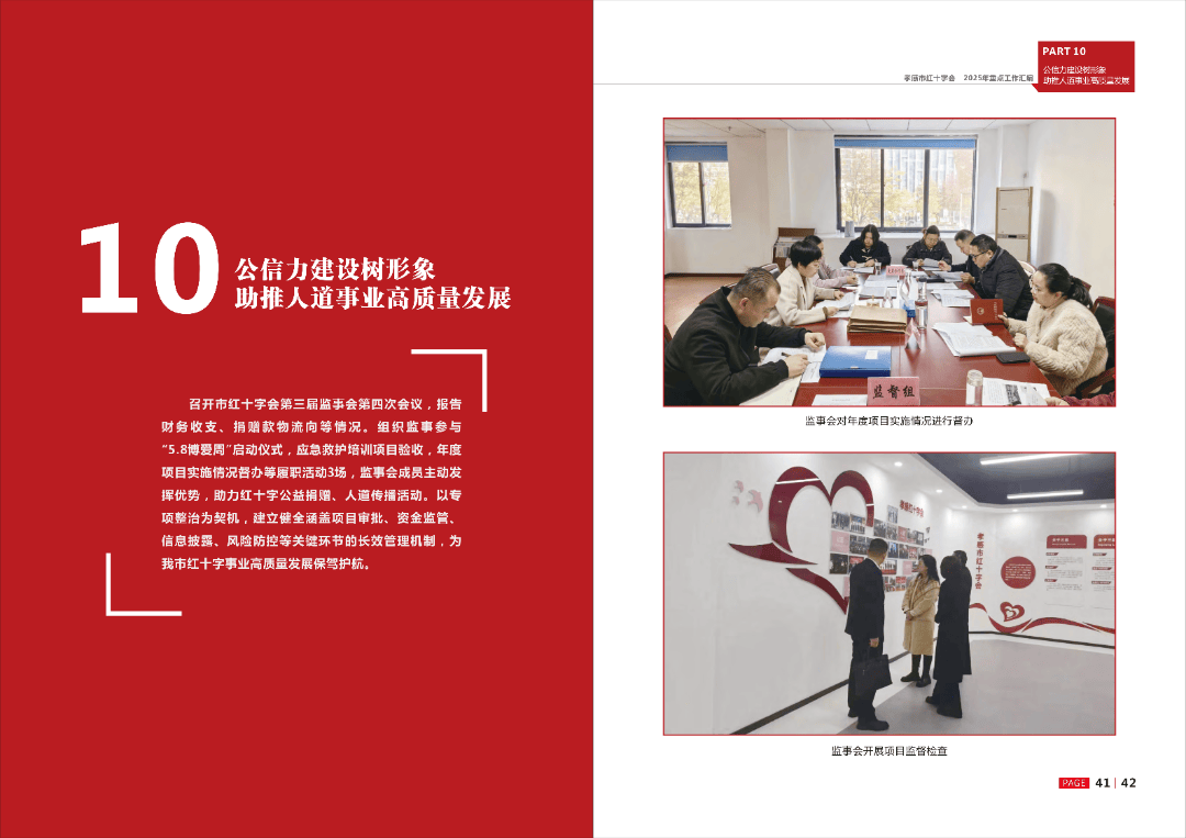 召开市红十字会第三届监事会第四次会议,报告财务收支、捐赠款物流向等情况。组织监事参与“5.8博爱周”启动仪式,应急救护培训项目验收,年度项目实施情况督办等履职活动3场,监事会成员主动发挥优势,助力红十字公益捐赠、人道传播活动。以专项整治为契机,建立健全涵盖项目审批、资金监管、信风险防控等关键环节的长效管理机制,为我市红十字事业高质量发展保驾护航。