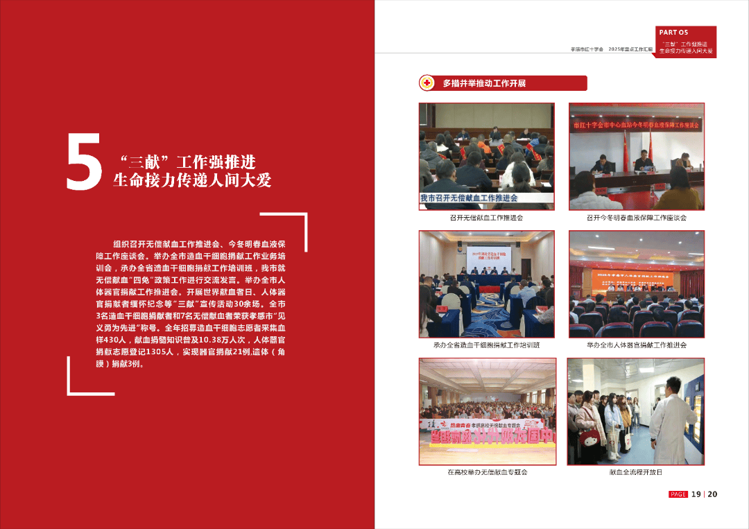 加强宣传阵地运营,深化与主流媒体合作,做到重大活动重要工作有新闻、有图片、有视频。拍摄人体器官捐献主题宣传片《星河家书》,传递捐献者无私大爱。举办“博爱澴川 人道同行”主题活动暨2025年“红十字博爱周”启动仪式,在全市开展“世界红十字日”宣传和人道服务。在万达广场举办“致敬希望英雄”联合宣传活动,提高群众自救互救能力和“献血捐髓”救人意识。全市红十字系统官微发布推文380条、短视频75个,被孝感日报报道22次,孝感电视台报道6次,湖北日报客户端报道120次,中国红十字报报道36次,《博爱》杂志上稿2篇。孝感市红十字会、汉川市红十字会荣获中国红十字会总会表彰2025年“学读用”报刊工作突出单位。