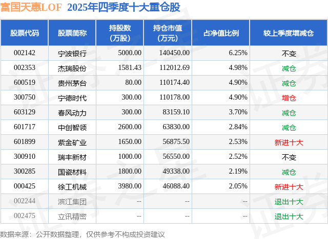根据2025基金年报公募基金重仓股数据,重仓该股的公募基金共22家,其中持有数量最多的公募基金为富国基金的富国天惠成长混合(LOF)A。富国天惠成长混合(LOF)A目前规模为211.02亿元,最新净值3.005(3月18日),较上一交易日下跌0.05%,近一年上涨18.45%。该公募基金现任基金经理为朱少醒。