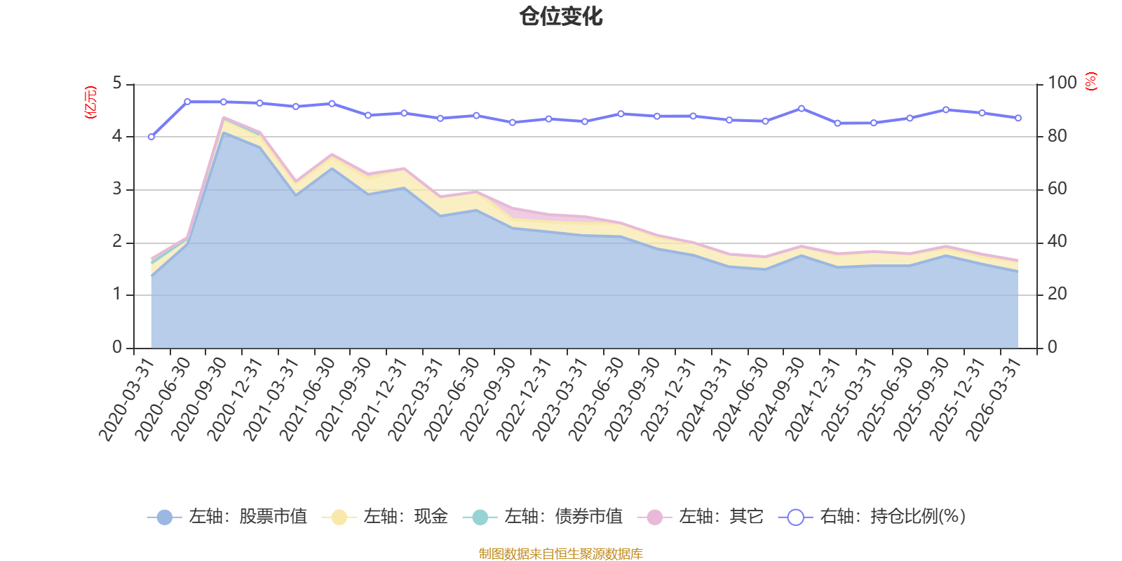 据定期报告数据统计,近三年平均股票仓位为87.67%,同类平均为88.23%。2020年上半年末基金达到93.37%的最高仓位,2020年一季度末最低,为80.07%。