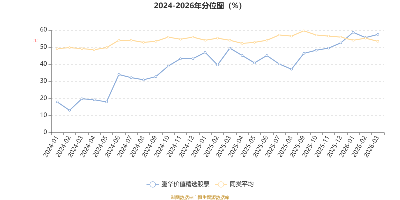 通过所选区间该基金净值增长率分位图,可以观察该基金与同类基金业绩比较情况。图为坐标原点到区间内某时点的净值增长率在同类基金中的分位数。