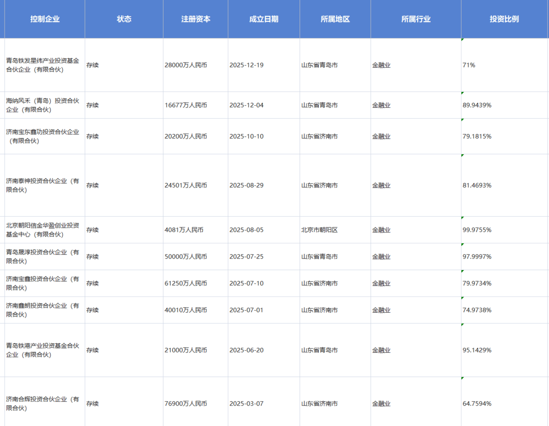 这一转型早有预示。此前,山东铁路基金已通过旗下平台投资了特来电新能源股份有限公司,切入新能源汽车充电赛道;2025年底主导成立的青岛铁发星纬产业基金,则明确聚焦电子信息、智能制造等前沿领域。
