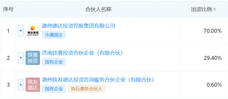 德州德达投资控股集团(以下简称“德达投资”)作为德州市属国企,以70%的出资比例成为控股股东,济南铁赛投资则以29.4%的比例作为重要战略出资人。执行事务合伙人由本地机构担任。