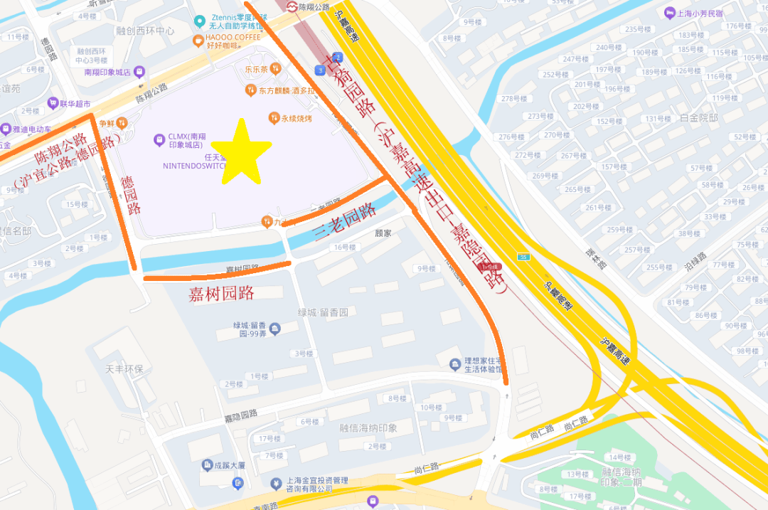 古猗园路(沪嘉高速出口-嘉隐园路);嘉树园路;三老园路;陈翔公路(沪宜公路-德园路)。